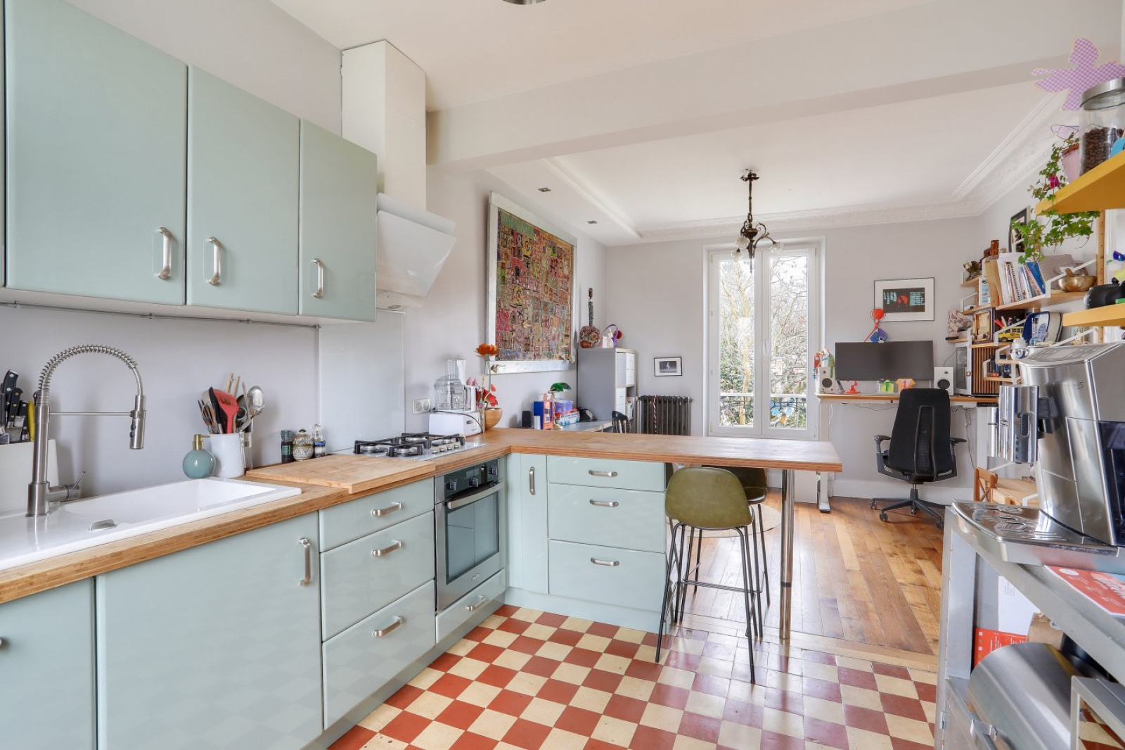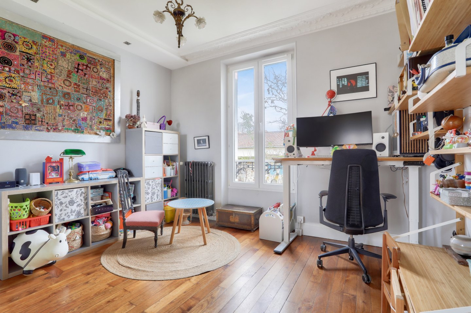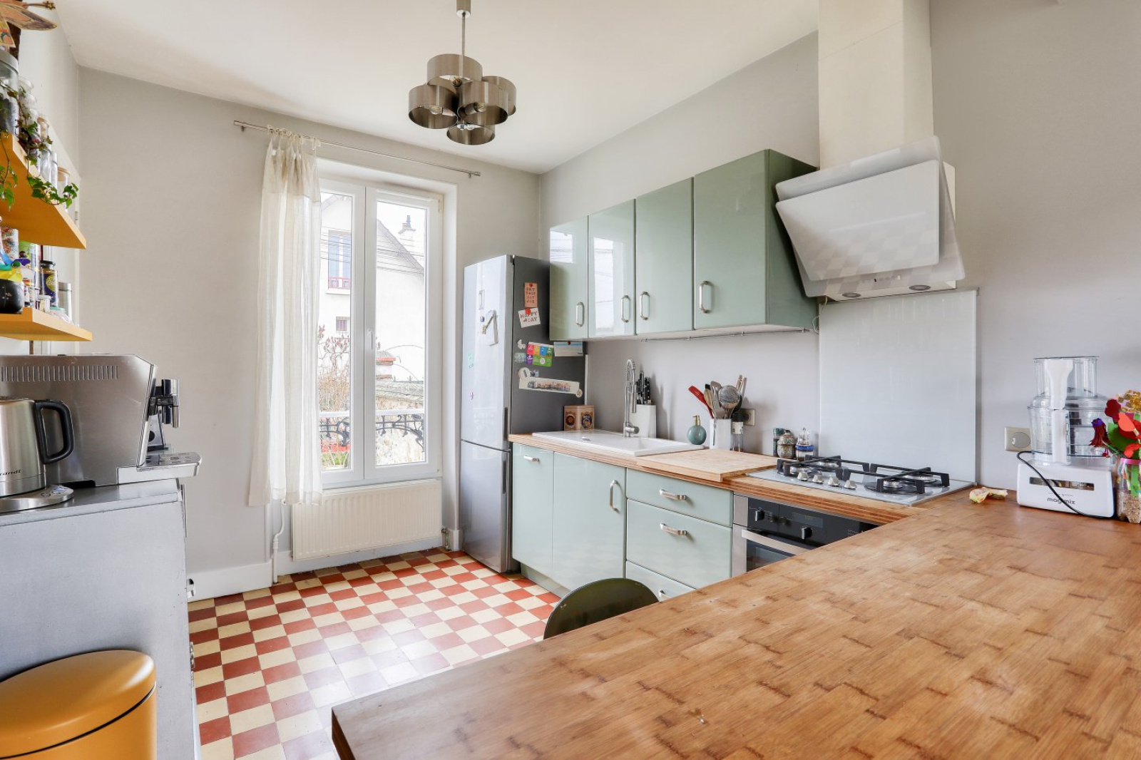 Vous rêvez d'un cocon douillet plein de charme à deux pas des écoles, de la gare et de toutes les commodités ? Ne cherchez plus. Cette meulière de 1914 rénovée avec amour est idéalement située dans une impasse ultracalme. Le rez-de-chaussée se compose d'un séjour traversant avec son poêle à bois et son accès à la terrasse et au jardin. De l'autre côté du dégagement, la jolie cuisine aménagée est ouverte sur un espace pouvant accueillir la salle à manger. La salle de bains, où chaque mètre carré a été utilisé, jouit d'une belle fenêtre. Les WC sont séparés.